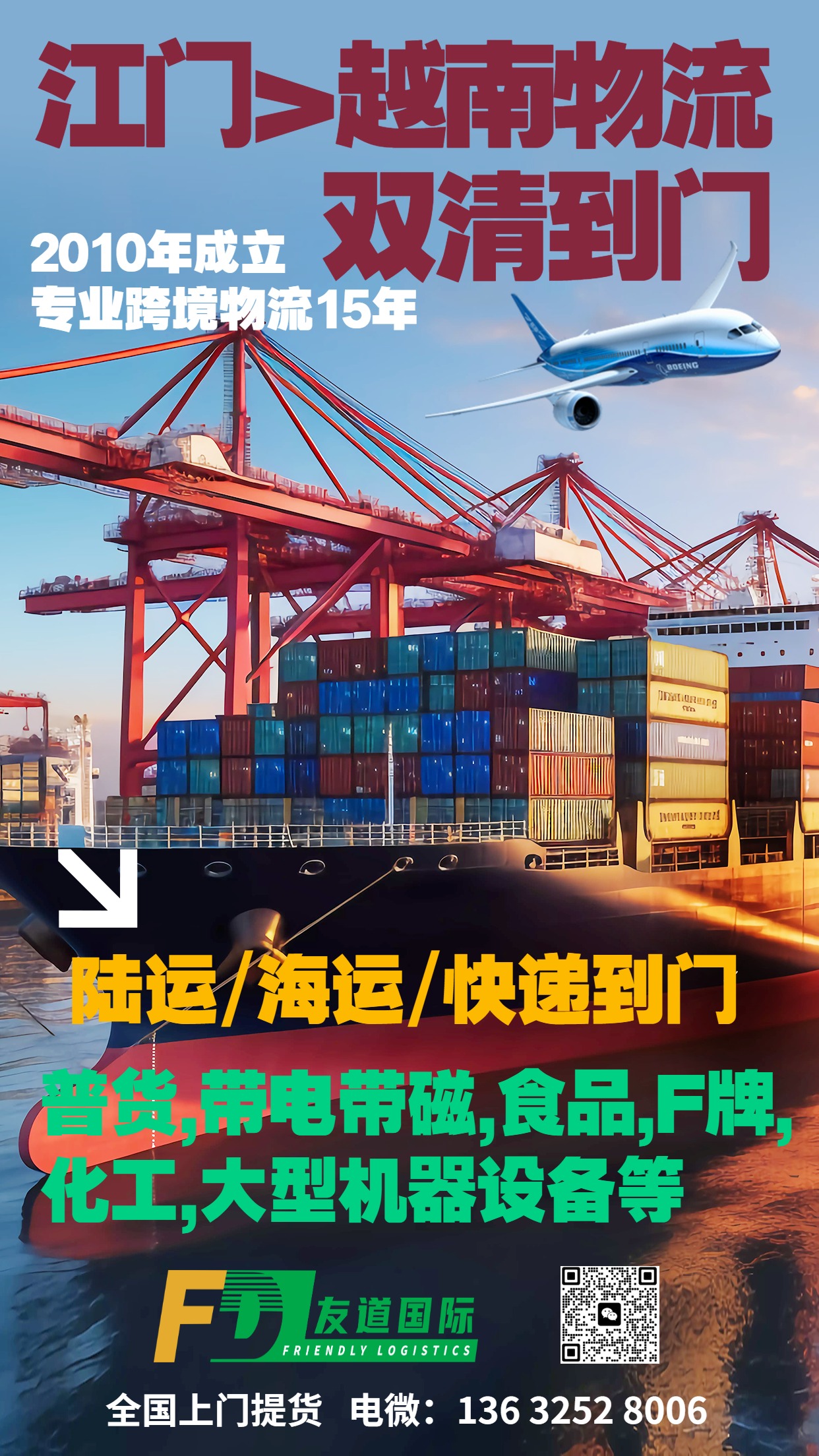 友道国际物流成立于2010年,总部位于深圳,专注跨境物流十多年,是一家拥有交通部颁发的无船承运人和中国航空协会颁发的国际货运代理人资格,已获国家商务部批准为一级国际货运代理,友道国际物流优质提供:江门发货到越南_江门发物流到越南_江门陆运货物到越南_江门海运发货到越南_江门发越南专线物流公司_陆运发货到越南物流公司_江门到越南货代公司_中国海运到越南的物流公司_陆运到越南的物流公司_海运到越南的物流公司_私人物品发到越南_发样品到越南_发国际快递到越南_DHL到越南_UPS到越南_联邦FEDEX到越南物流服务。